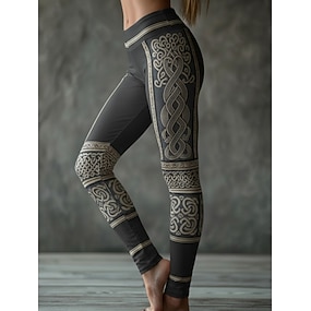 Női Leggingek Kényelmes leggings Szabadság Szüret Etnikai stílus Teljes hossz Magas derék Grafika Absztrakt Nyomtatás Kényelmes Nagy rugalmasságú Hétköznapi Napi Vakáció Sötétszürke Bézs Szürke