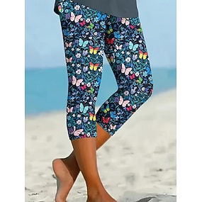 Női Leggingek Szomorú farmer Szabadság Szüret Alkalmi Teljes hossz Magas derék Virágos Pillangó Elasztikus derékpánt Nyomtatás Mekano Kényelmes Nyúlós Szabadtéri Utca Medence Égszínkék Nyár Tavasz Ősz