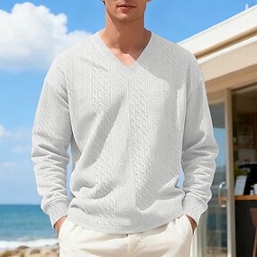 Férfi Pulóver Fekete Fehér Arcpír rózsaszín Medence Lóhere Terített nyak Sima Jacquardszövet Sport & Szabadtéri Napi Szabadság Poliészter Utcai sikk Alap Alkalmi Tavasz Ősz Ruházat Pulcsik Pulóverek