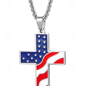 Az Egyesült Államok 250. évfordulós férfi rozsdamentes acél amerikai zászlós kereszt medálos nyaklánc tartós és stílusos tökéletes függetlenségi napra amerikai és hétköznapi viselethez