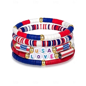 női hazafias gyantás gyöngyös nyaklánc karkötő szett az amerikai 250. évfordulóra, függetlenség napjára, hétköznapi viseletre és utazási nyaralási ékszerekre