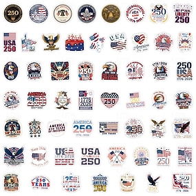 250 db-os amerikai függetlenség napi ünnepi matrica, graffiti diy jegyzetfüzet, gördeszka, bőrönd, vízálló matricák, 5 csomag 50 darabos művészpapír