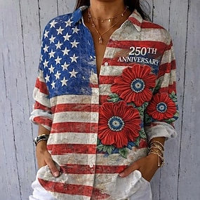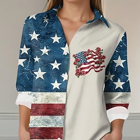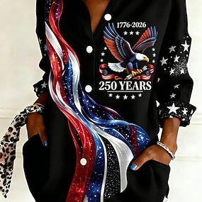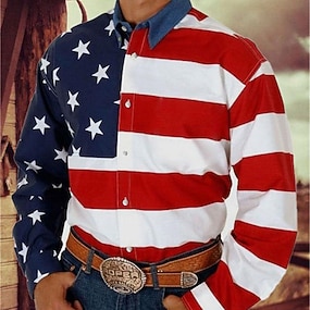 Férfi Július 4-én, az Egyesült Államok 250. évfordulóján Amerikai zászló Nyugati ing Gombos póló Cowboy ing Hosszú ujj Nyugati Napi Ősz & tél Térfogatcsökkenés Galléros ingek 3D nyomtatás Elülső zseb