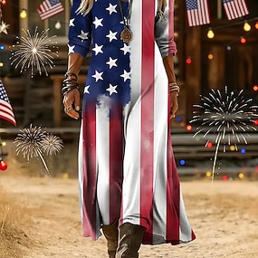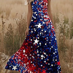 Amerikai függetlenség napja Női Midi ruha Nyári ruha A vonalú ruha Szabadság Alkalmi Boho Tengerpart Randi Normál Grafika Zászló Ujjatlan U-alakú Rubin Bíbor Lóhere Nyár Tavasz