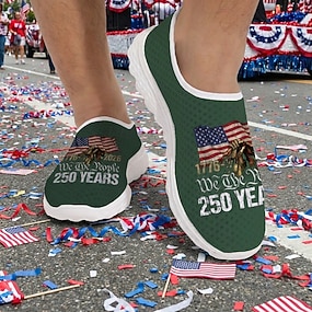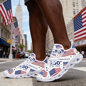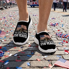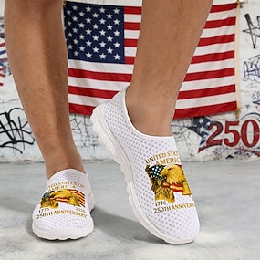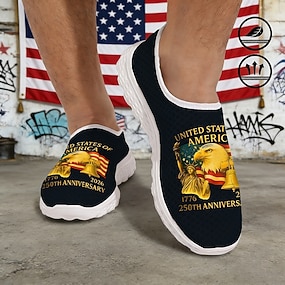 Az Egyesült Államok 250. évfordulós Férfi Patriotikus Hálós Sportcipők – Légáteresztő Amerikai Zászló Sas Sportcipők a Függetlenségi Naphoz Nyári BBQ-hoz és Kültéri Fitnesz Tevékenységekhez Vincent