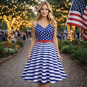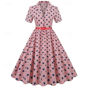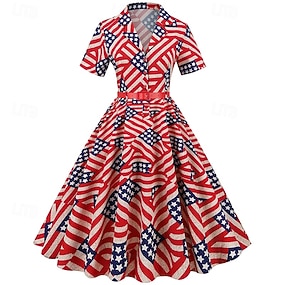 250. évforduló az USA-ban 1950-es Retró Déli Ruhák Swing ruha Flare ruha Rövid ujjú A-vonalú Jelmez Női július 4-e Függetlenség napja Felnőttek Ruha Tavaszi nyár
