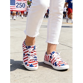 Az Egyesült Államok 250. évfordulós női USA piros-kék fűzős vászon cipők - Vintage hazafias szabadidős sportcipők a Függetlenség Napjára felvonulásokhoz városi sétákhoz utazáshoz és mindennapi