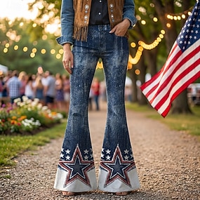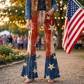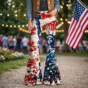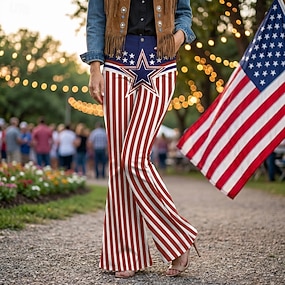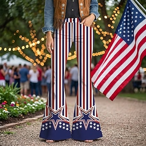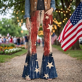 250. évforduló az USA-ban Retró 1970-es évek Nadrágok Bell Bottom Pants Hippi Diszkó Magas derék Jelmez Női Álarcos mulatság július 4-e Parti Függetlenség napja Felnőttek Nadrágok