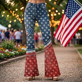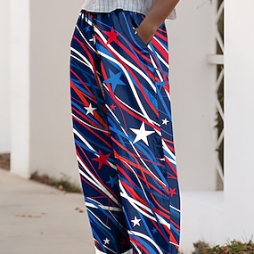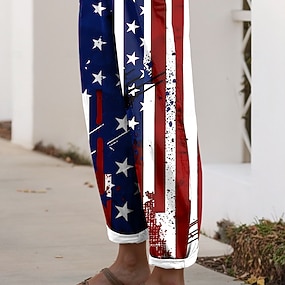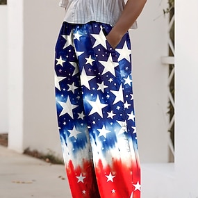 Női Alkalmi nadrág Szabadság Alap Bokáig érő Közepes csípőPantsAmerikai függetlenség napja Amerikai zászló Mokaszinok Nem elasztikus Napi Fehér Nyár Tavasz Laza öltözet