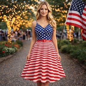 250. évforduló az USA-ban 1950-es Retró Déli Ruhák Swing ruha Flare ruha Rövid ujjú A-vonalú Jelmez Női július 4-e Függetlenség napja Felnőttek Ruha Hazatérő ruhák Tavaszi nyár