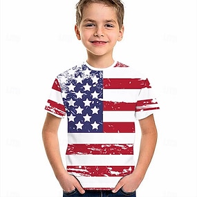 Amerikai függetlenség napja Fiú 3D Grafika Zászló Póló Rövid ujjú Nyár Tavasz Divat Alap Gyerekek 4-12 év Terített nyak Hétköznapi Napi Szabadtéri Normál