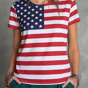 Amerikai függetlenség napja Lány 3D Zászló Póló Rövid ujjú Nyár Tavasz Divat Alap Gyerekek 4-12 év Terített nyak Hétköznapi Napi Szabadtéri Normál