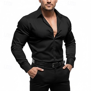 Férfi Ing Nem vas ing Galléros ing Gombos póló Sima Előírásos Esküvő Fekete Fehér Rózsaszín Medence Hosszú ujj Térfogatcsökkenés Nyár Tavasz Ruházat Sima