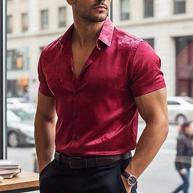 Férfi Ing Szatén ing Gombos póló Gradiens Hétköznapi Esküvő Fekete Rubin Sötétkék Rövid ujjú Térfogatcsökkenés Nyár Ruházat Jacquardszövet
