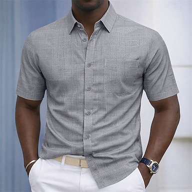 Férfi Ing Gombos póló Tömör szín Hétköznapi Napi Barna Szürke Rövid ujjú Térfogatcsökkenés Nyár Ruházat Kockás mintás
