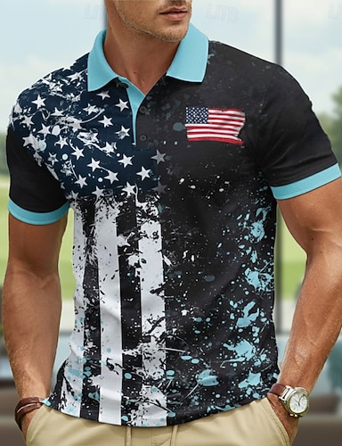 2026. július 4. 250. Férfi Amerikai amerikai zászló Pólóingek Rövid ujjú Pólóingek Galléros ingek Alkalmi Szabadtéri Utcai öltözék Sportruházat Gombok Jól szellőző háló Tavaszi nyár Medence Rubin