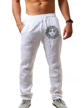 Férfi Vászon nadrág Nadrág Nyári nadrág Strand nadrág Nyomtatott Egyenes lábbal Grafika Nap Mekano Szabadtéri Teljes hossz Otthon Hétköznapi Napi Divat Utcai sikk Fehér Medence Mikroelasztikus