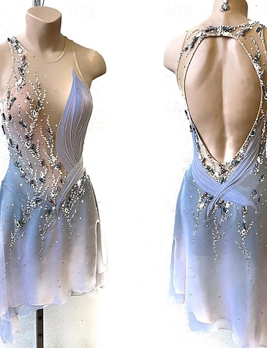 Kűrruha Női Lány Klizanje na ledu Ruhák Szürke+Fehér Nyissa meg a Vissza elemet Aszimmetrikus szegély Háló Nagy rugalmasságú Edzés Verseny Kűrruhák Klasszikus Kristály / Strassz Ujjatlan
