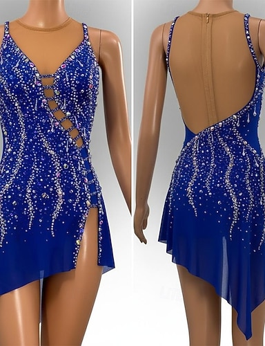 Kűrruha Női Klizanje na ledu Ruhák Kék Kollázs Aszimmetrikus szegély Nyúlós Edzés Verseny Kűrruhák Klasszikus Kristály / Strassz Ujjatlan Jégkorcsolyázás Műkorcsolyázás