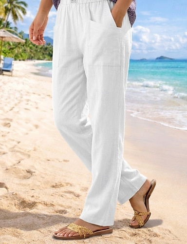 Női Nadrág Nyári nadrág Bő nadrág Strand nadrág Szabadság Alap Teljes hossz Közepes csípő Tömör szín Sima Zsinór Egyenes lábbal Mokaszinok Mekano Légáteresztő Nem elasztikus Napi Tengerpart Szabadság