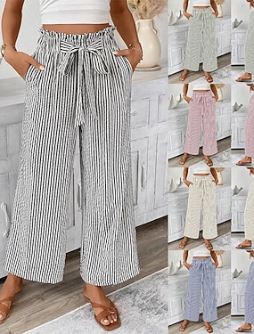 Női Nadrág Nyári nadrág Bő nadrág Alkalmi nadrág Szabadság Divat Alap Teljes hossz Közepes csípő Zsinór Zseb Széles lábszár Mokaszinok Lélegzési képesség Mekano Nem elasztikus Napi Tengerpart