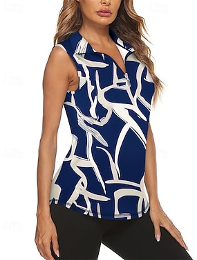 Női Grafika Mértani Sportpóló POLO trikó Teniszing Ujjatlan Cipzár Nagy rugalmasságú Nedvességelvezető Légáteresztő Tenisz Golf Pickleball Térfogatcsökkenés Cipzáras gallér Ing Felsők Fekete Kék