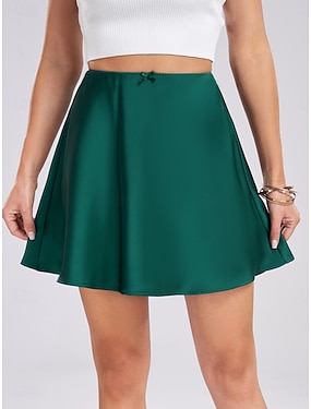 Női Szatén szoknyák Divat Alkalmi Mini Magas derék Szoknyák Sima Nem elasztikus Napi Utca Fekete Pezsgő Barna Lóhere Nyár