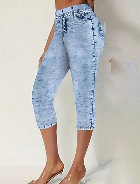 Női Capri nadrágok Leggingek Szabadság Divat Hawaii Borjú-hossz Közepes csípő Virágos Grafika Nyomtatás Nyomtatott Mokaszinok Mekano Légáteresztő Nyúlós Hétköznapi Napi Vakáció Tengerészkék Világoskék