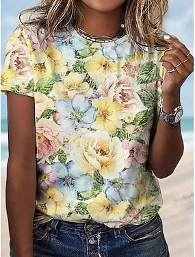 Női Póló Virágos Alkalmi Rövid ujjú Kerek Normál felsők Napi Nyomtatott Sárga Nyár
