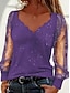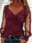 Női Blúz Háló Tömör szín Elegáns Stílusos Alap Hosszú ujj V-alakú Normál felsők Napi Fekete Bíbor Barna Tavasz Ősz Tél