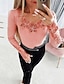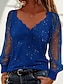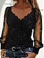 Női Póló Tee Top Csipke Kollázs Tömör szín Elegáns Alkalmi Hosszú ujj V-alakú Normál felsők Napi Alkalmi Hétvége Fekete Fehér Arcpír rózsaszín Tavasz Ősz