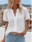 Női Ing Textúra blúz Pointelle póló Blúz Sima Aktív Stílusos Rövid ujjú V-alakú Normál felsők Hétköznapi Napi Szabadtéri Fehér Arcpír rózsaszín Khakizöld Fekete Nyár Tavasz