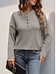 Női Ribos kötött topok Kollázs Gombok Alkalmi Hosszú ujj Henley Normál felsők Napi Alkalmi Világos szürke Tavasz Ősz