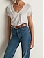Női Blúz Tömör szín Napi Stílusos Alap Féhosszú V-alakú Normál felsők Napi Medence Fehér Arcpír rózsaszín Narancssárga Lóhere Nyár Tavasz