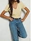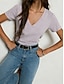 Női Póló Tee Top Kollázs Tömör szín Divat Stílusos Klasszikus Rövid ujjú V-alakú Normál felsők Napi Alkalmi Hétvége Fehér Sárga Bíbor Nyár Tavasz