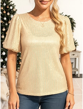 Női Póló Pólók Flitter Kivágott Kulcslyuk Tömör szín Elegáns Stílusos Szexi Hosszú ujj Terített nyak Kerek Normál felsők Napi Alkalmi Party ruhák Vörös arany Tavasz Ősz