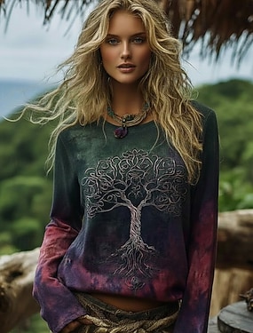 Női Póló Nyomtatott Ombre Grafika Stílusos Klasszikus Modern Hosszú ujj Terített nyak Normál felsők Napi Hétvége Nyaralási viselet Medence Bíbor Nyár Tavasz Ősz