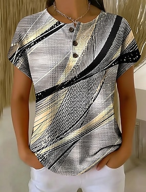 Női Póló Nyomtatott Mellkasi gombok Mértani Stílusos Modern Alkalmi Rövid ujjú Henley Normál felsők Napi Szürke Nyár Tavasz