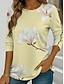 Női Póló Nyomtatott Virágos Grafika Divat Stílusos Alkalmi Hosszú ujj Terített nyak Normál felsők Napi Hétvége Nyaralási viselet Sárga Arcpír rózsaszín Bíbor Lóhere Nyár Tavasz Ősz