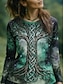Női Póló Nyomtatott Grafika Batikolt Szüret Alkalmi Boho Hosszú ujj V-alakú Normál felsők Napi Medence Nyár Tavasz Ősz