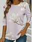 Női Póló Nyomtatott Virágos Grafika Divat Stílusos Klasszikus Rövid ujjú Terített nyak Kerek Hosszú felsők Hétköznapi Napi Hétvége Hamvaszöld Fehér Arcpír rózsaszín Bézs Nyár Tavasz