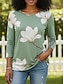 Női Póló Nyomtatott Virágos Grafika Növények Divat Stílusos Klasszikus Rövid ujjú Terített nyak Kerek Normál felsők Hétköznapi Napi Hétvége Medence Zöld, bézs színű Fekete Barna Khakizöld Nyár Tavasz