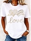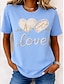 Valentin nap Női Póló Nyomtatott Virágos Grafika Divat Stílusos Klasszikus Rövid ujjú Terített nyak Kerek Normál felsők Hétköznapi Napi Hétvége Medence Fekete Fehér Arcpír rózsaszín Barna Nyár Tavasz