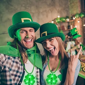 2 db Szent Patrik-napi ír lóhere alakú LED-es világító gyöngy nyaklánc, parti ünnepségre, fesztiváldekorációra, zöld lóhere nyaklánc ünnepi, rendezvény- és partikellékeknek