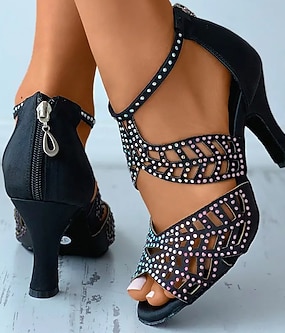 Női Magassarkúak Szandálok Extra méret Csillogó szandálok Parti Szabadtéri Napi Tömör szín Egyszínű Nyár Tavasz Strasszkő Tűsarok Köröm Elegáns Szexi Klasszikus Szatén Cipzár Fekete