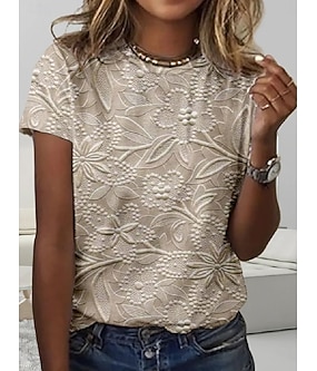 Női Póló 3D Nyomtatott Virágos Laid-Back Rövid Ujjú Kerek Nyakú Rendszeres Felsők Mindennapi Nyomat Bézs Nyár