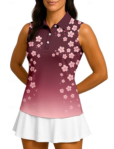 Női Virágos Sportpóló POLO trikó Rövid felső Teniszing Ujjatlan Virágos Gombok UPF50+ UV ellenálló Nagy rugalmasságú Nedvességelvezető Légáteresztő Röplabda Tenisz Golf Gallér Térfogatcsökkenés Ing