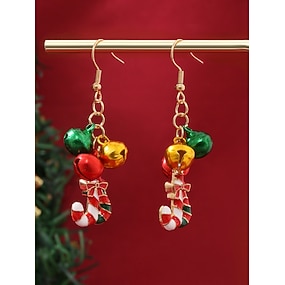 Női karácsonyi cukorpálcás fülbevalók csengőkkel és masnival, ünnepi ékszerek karácsonyi partikra és ajándékokba