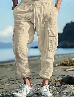 Férfi Vászon nadrág Cargo Joggers Nadrág Nyári nadrág Strand nadrág Zsinór Rugalmas derék Többzsebes Sima Mokaszinok Légáteresztő Hétköznapi Napi Szabadság Divat Klasszikus stílus Fekete Fehér