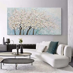 kézzel festett semleges virág művészet festmény kézzel készített virágos művészet virág fa olajfestmény kézzel készített absztrakt virág fehér virág olajfestmény hálószoba nappali műalkotás